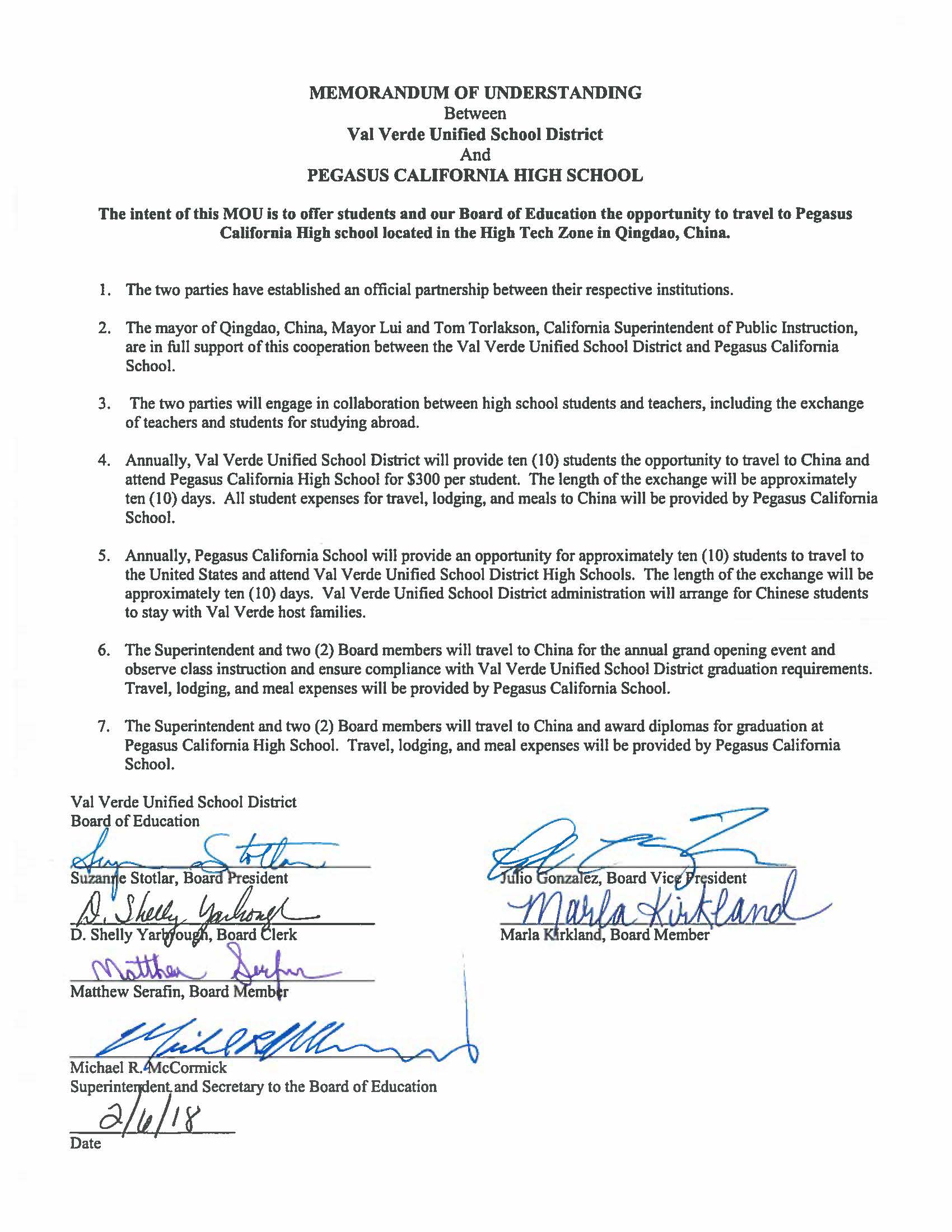 我们欢迎公众查阅相关谅解备忘录及巴尔韦德联合学区董事会决议,并自行作出判断。